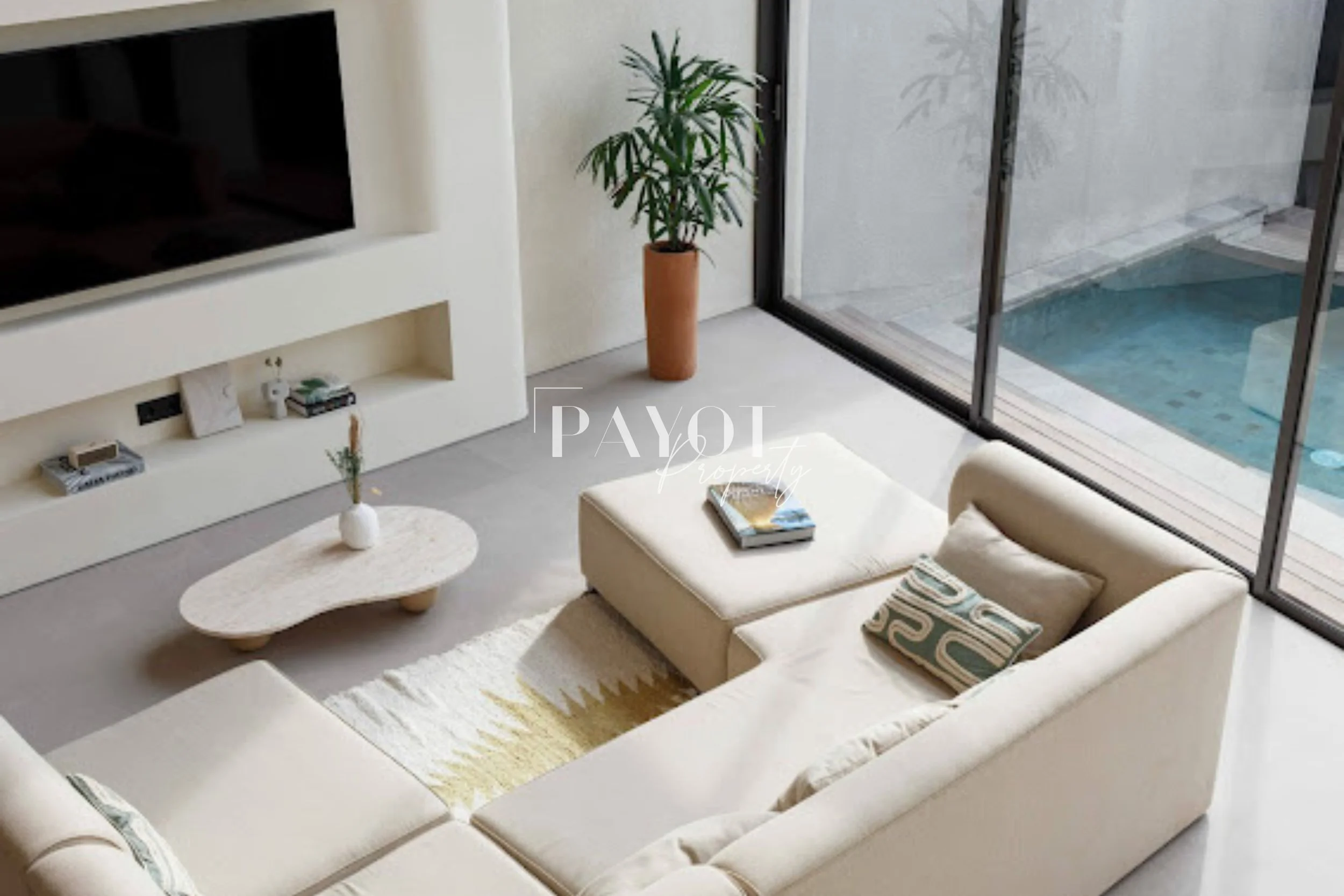 Two bedroom villa located in a hotel with direct access to their spa, gym and cafe. All materials chosen are of the highest quality and reflect the taste of the owners.